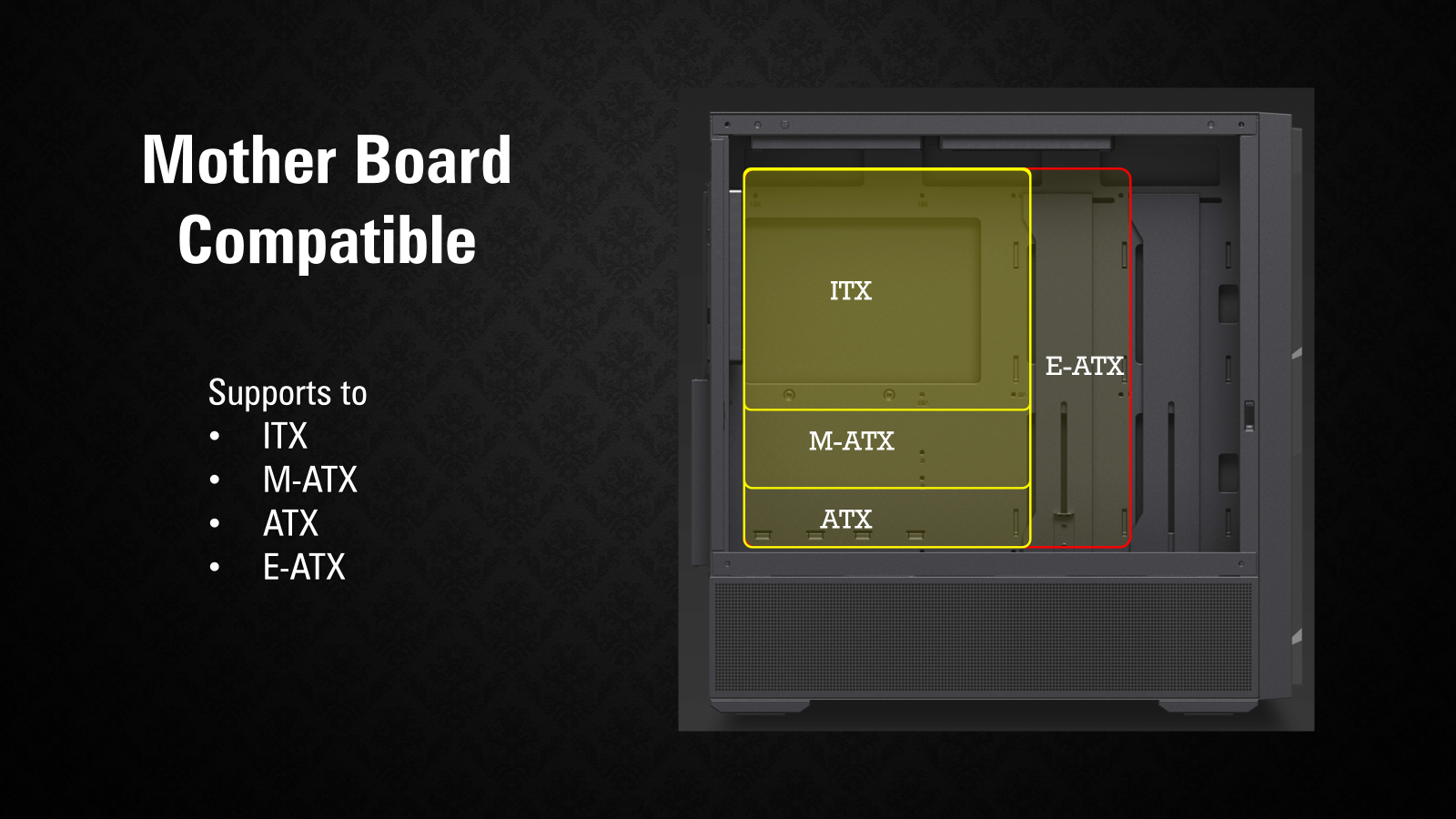 | Motherboard Compatibility | E-ATX, ATX、M-ATX、ITX |