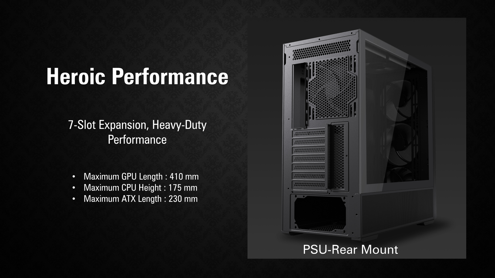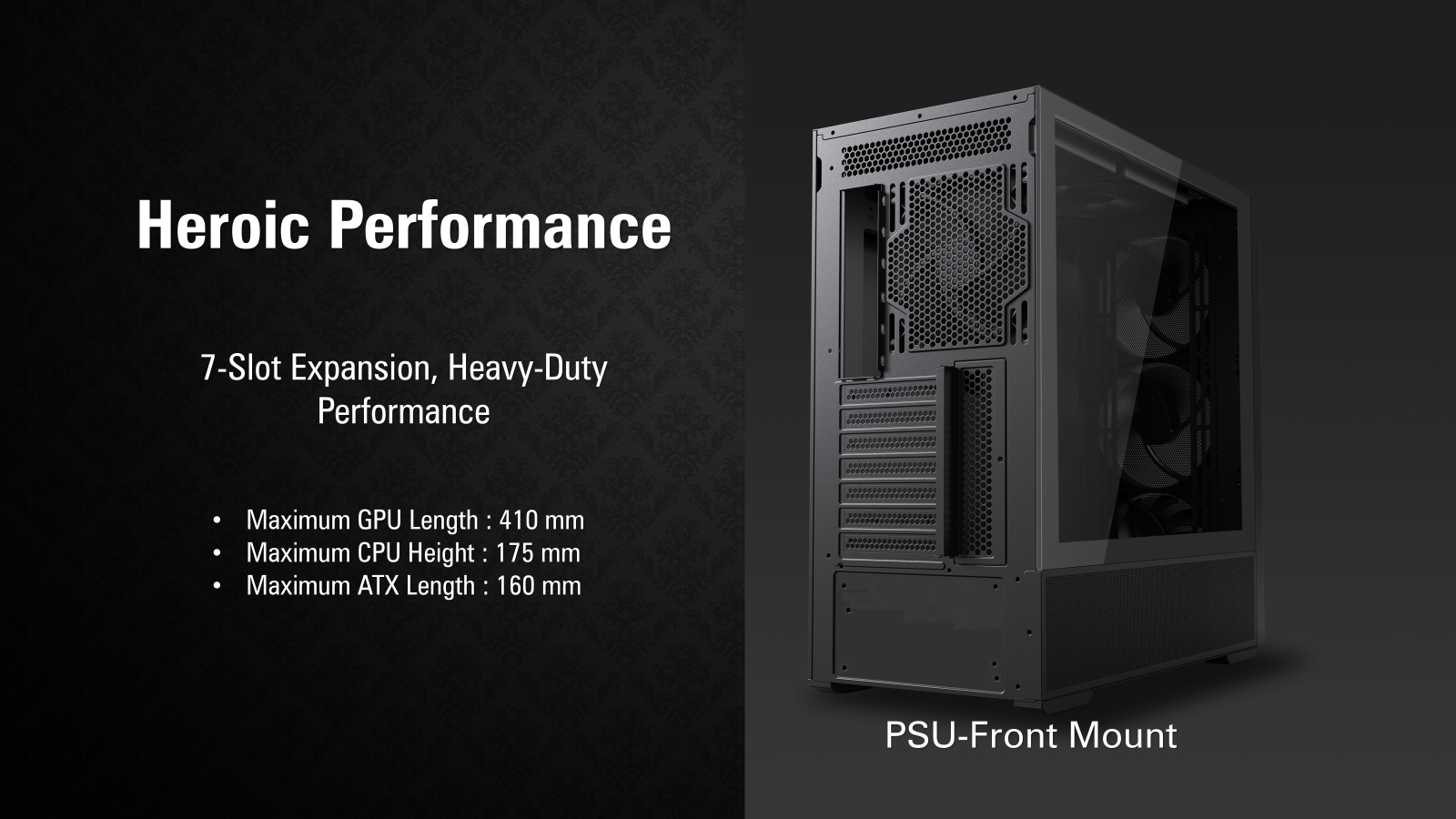 PSU Rear-Mount: 230 mm PSU Front-Mount: 160 mm |