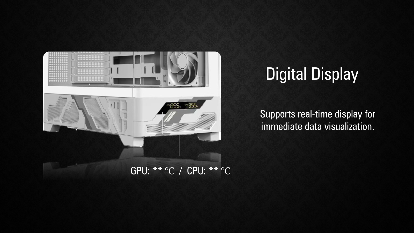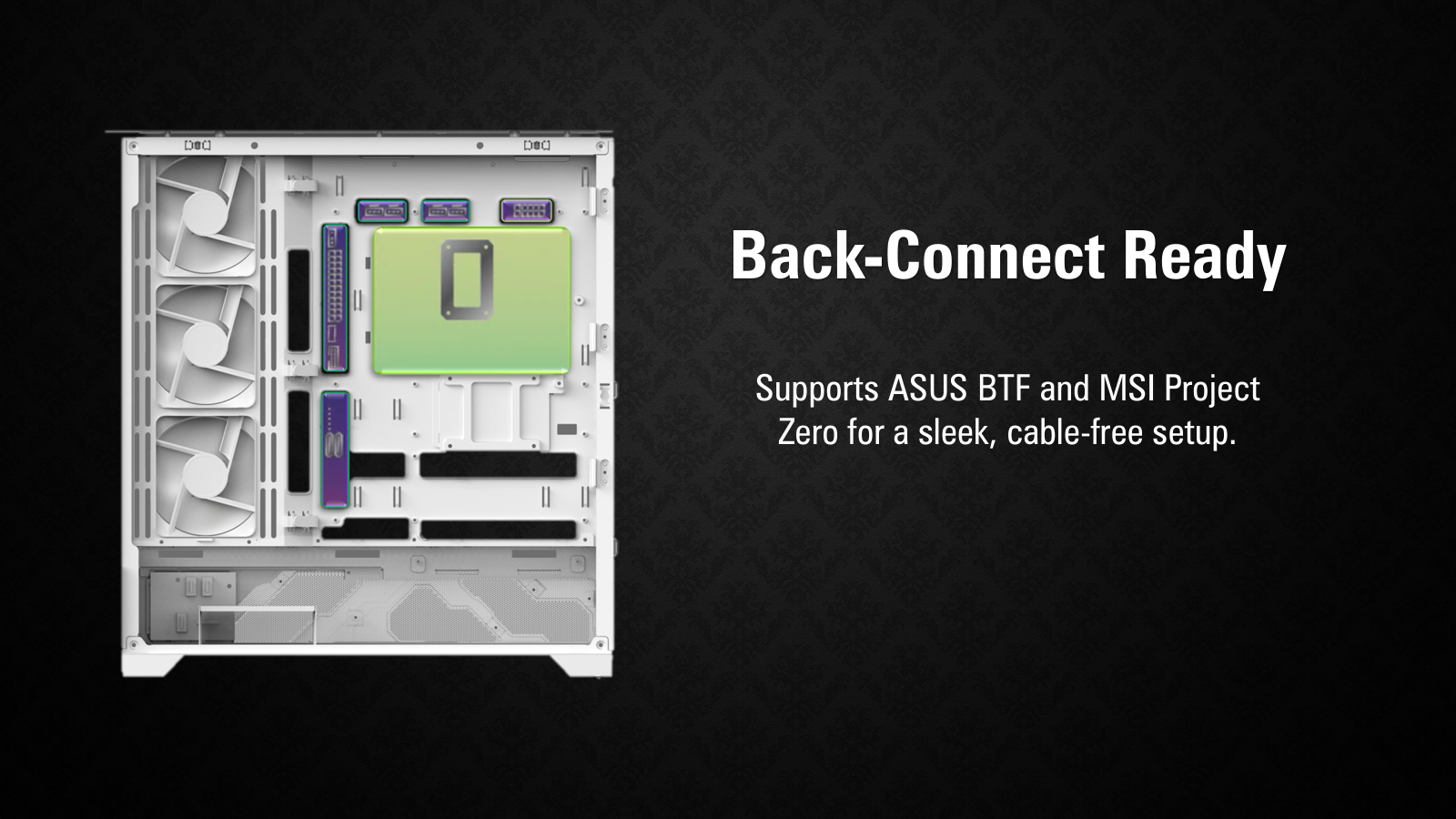 • Panoramic Tempered Glass • Six-Sided Ventilation • Back-connect Motherboard Support • Accommodates GPUs up to 440mm Length |