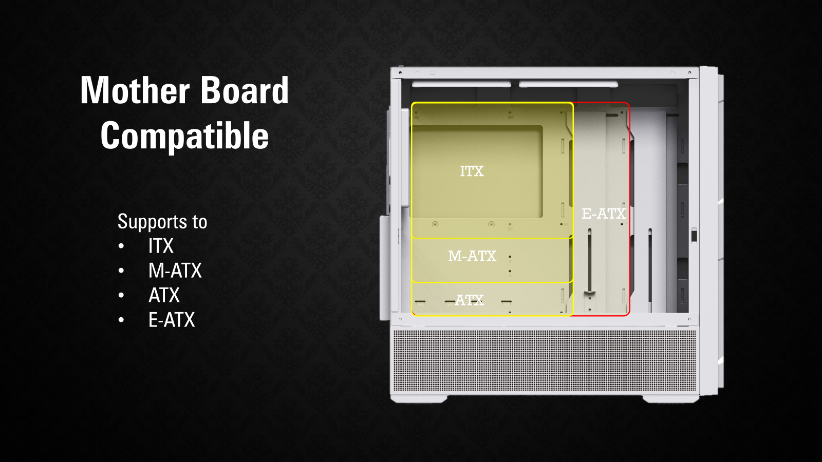 | Motherboard Compatibility | E-ATX, ATX、M-ATX、ITX |