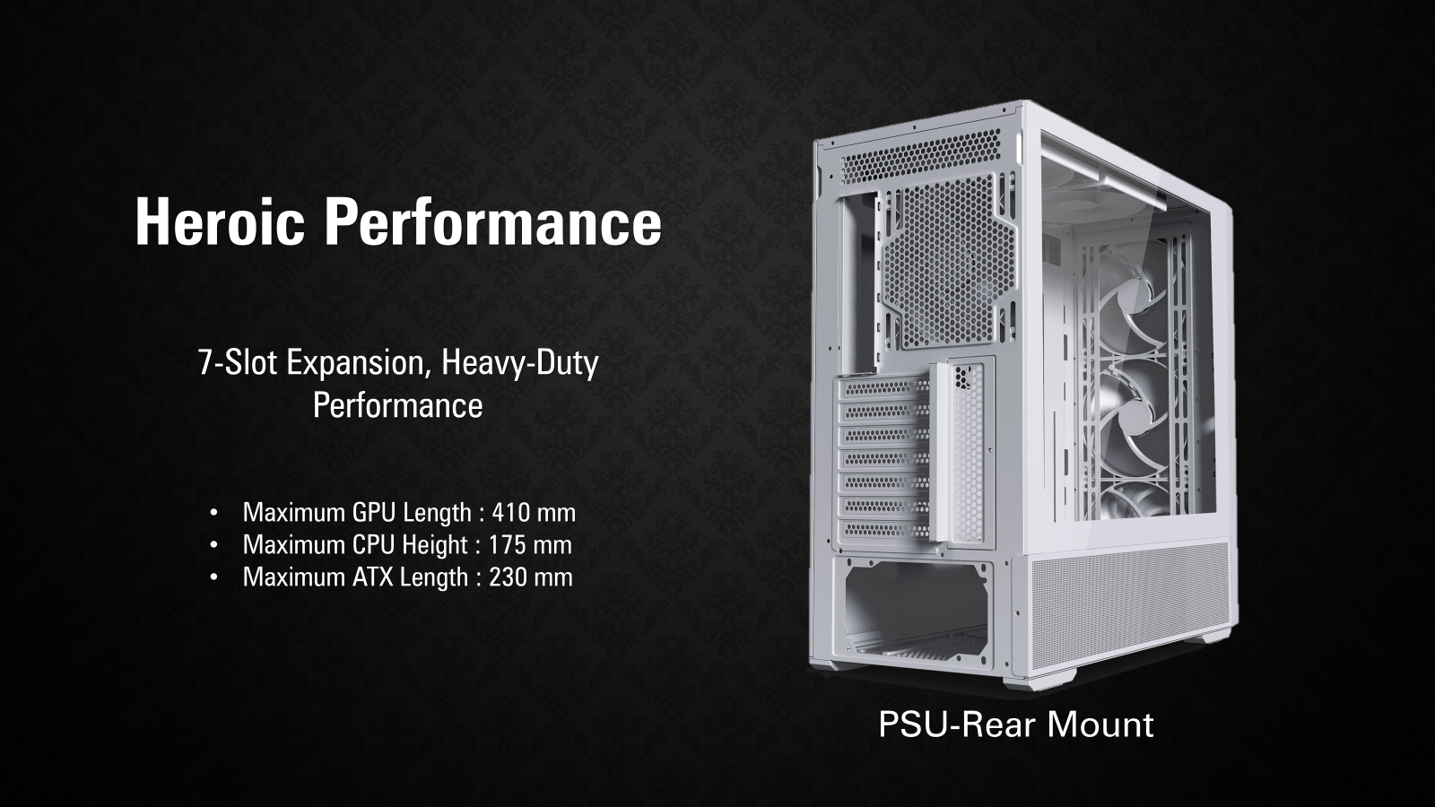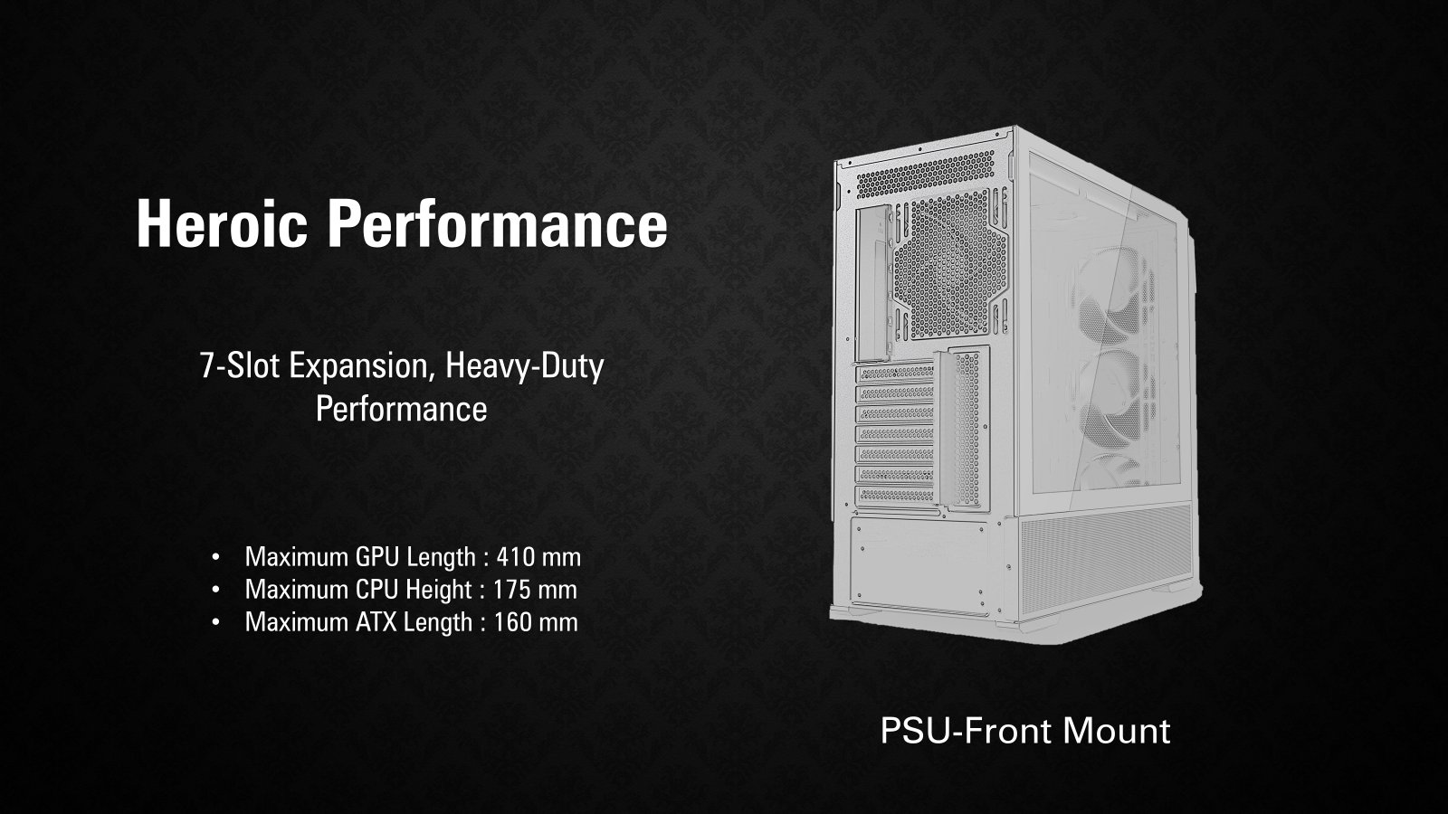 PSU Rear-Mount: 230 mm PSU Front-Mount: 160 mm |